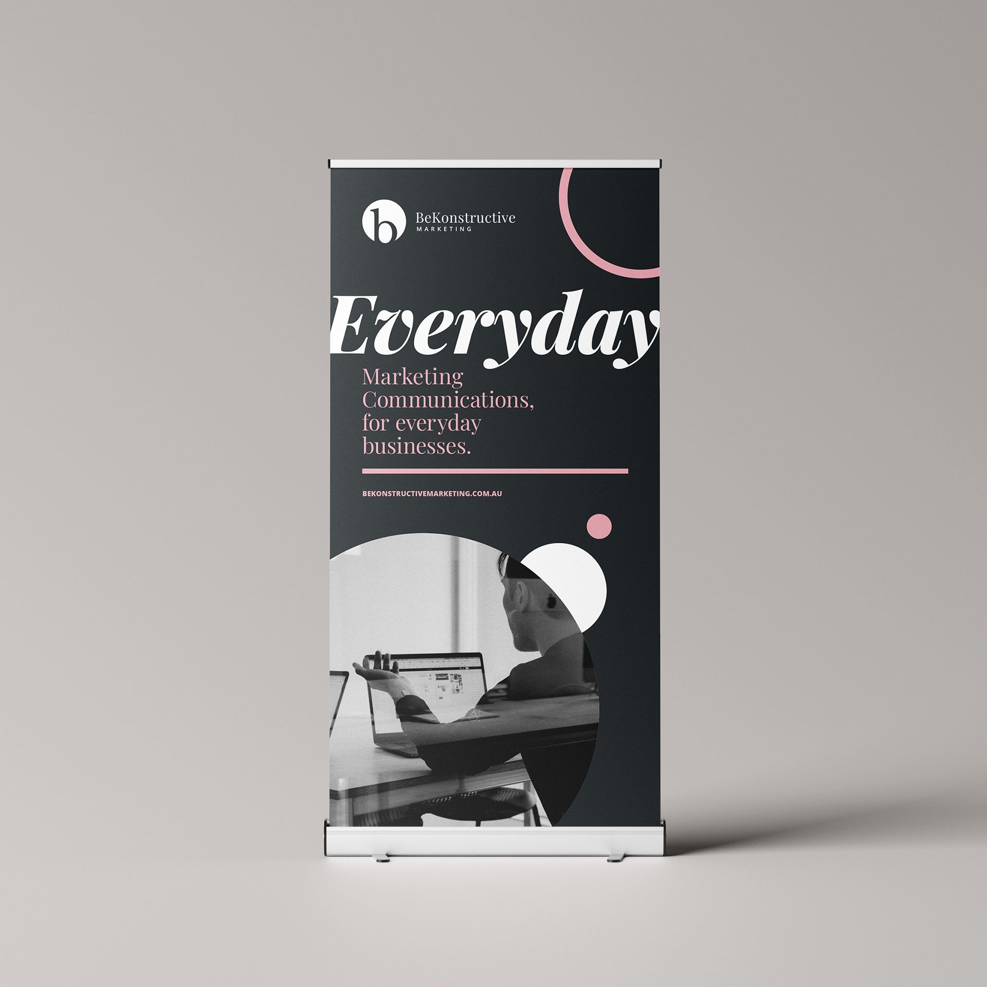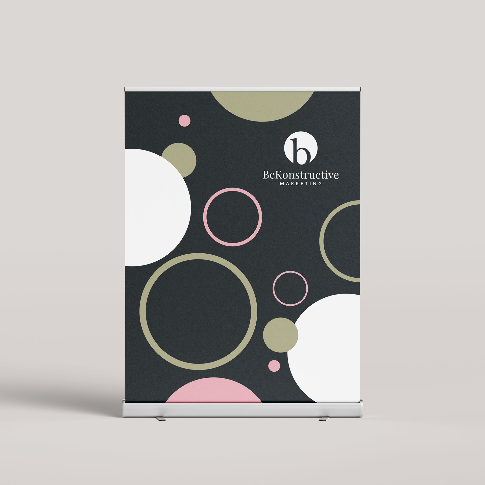 Through comprehensive research into the brand’s values and market landscape, I selected a charcoal base symbolising professionalism and stability, enhanced with vibrant pink and olive accents. This minimalist design reflects BeKonstructive’s distinctive personality, highlighting simplicity and elegance.
